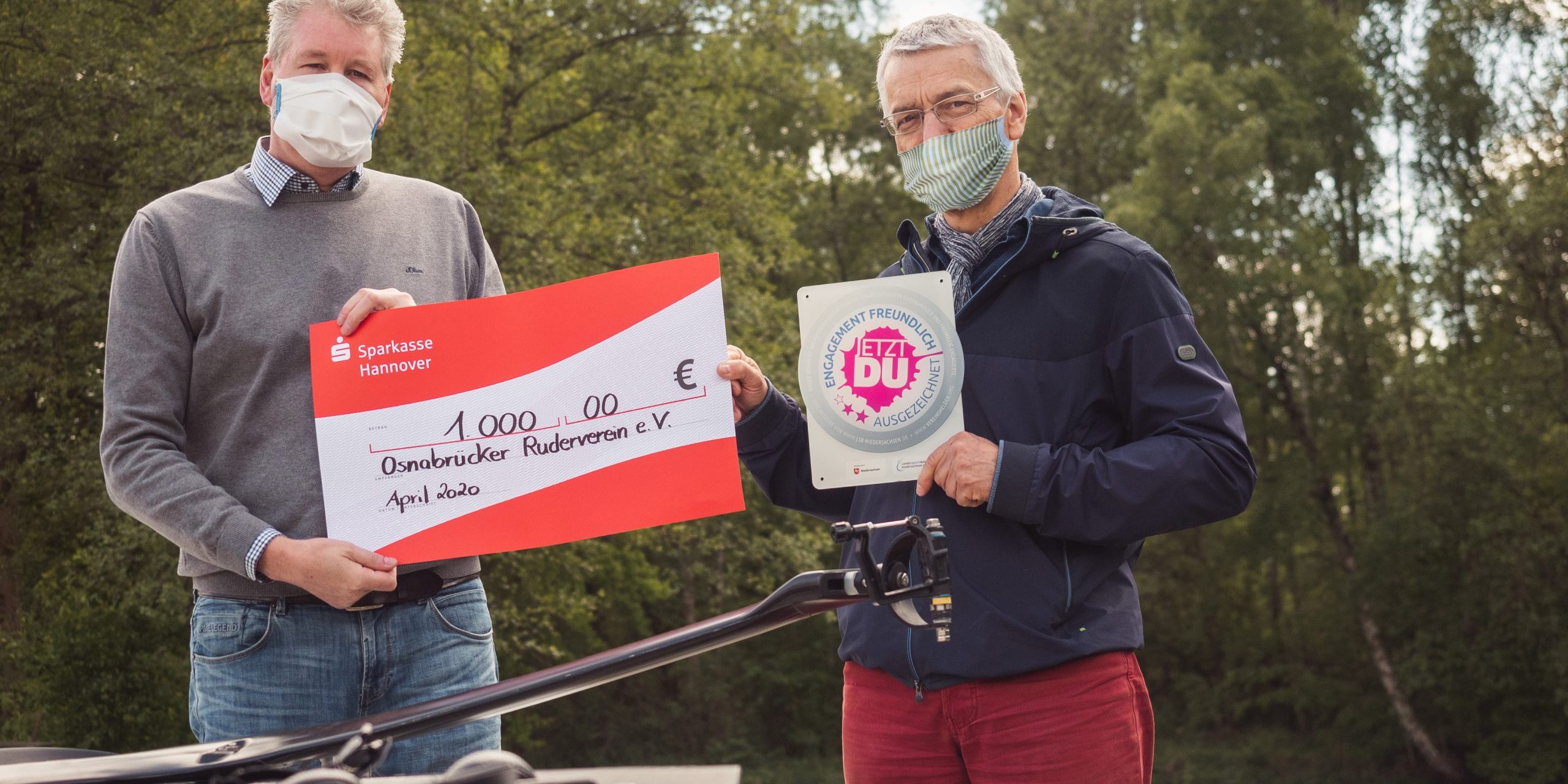 Über eine Urkunde, ein Türschild und einen Scheck über 1.000 Euro freute sich Dr. Jochen Kruse (stellv. Vorsitzenden des Osnabrücker Ruder-Vereins), als der SSB-Vorsitzende Ralph Bode, stellvertretend für den Landessportbund Niedersachsen (LSB), dem ORV offiziell die Auszeichnung „Engagementfreundlicher Sportverein“ in Silber verlieh.
